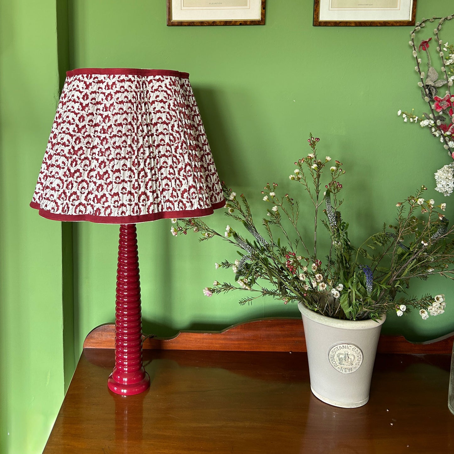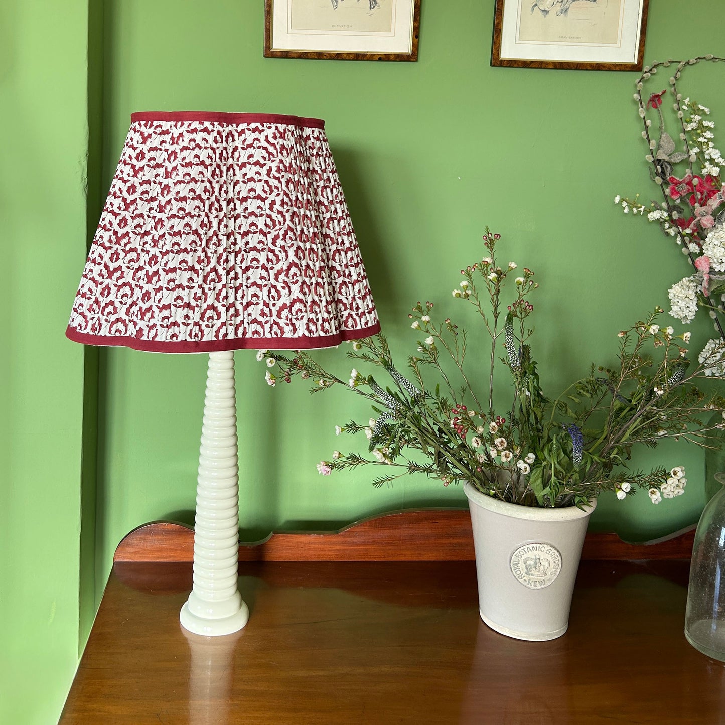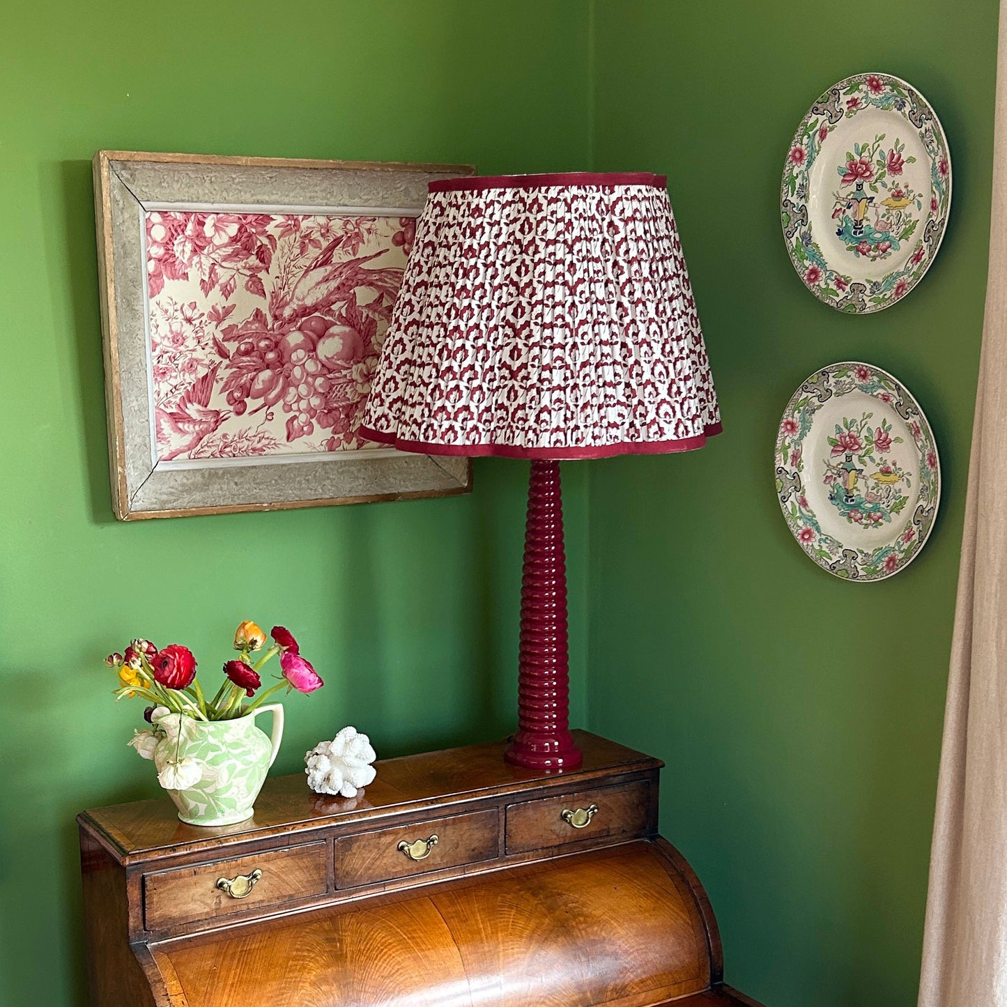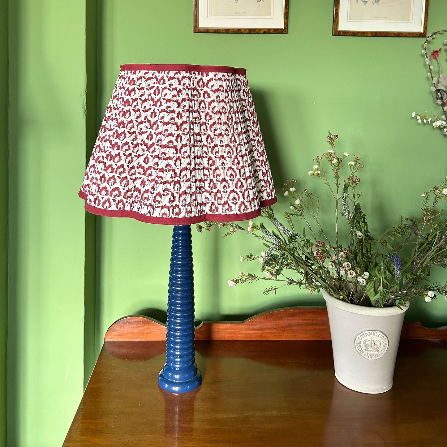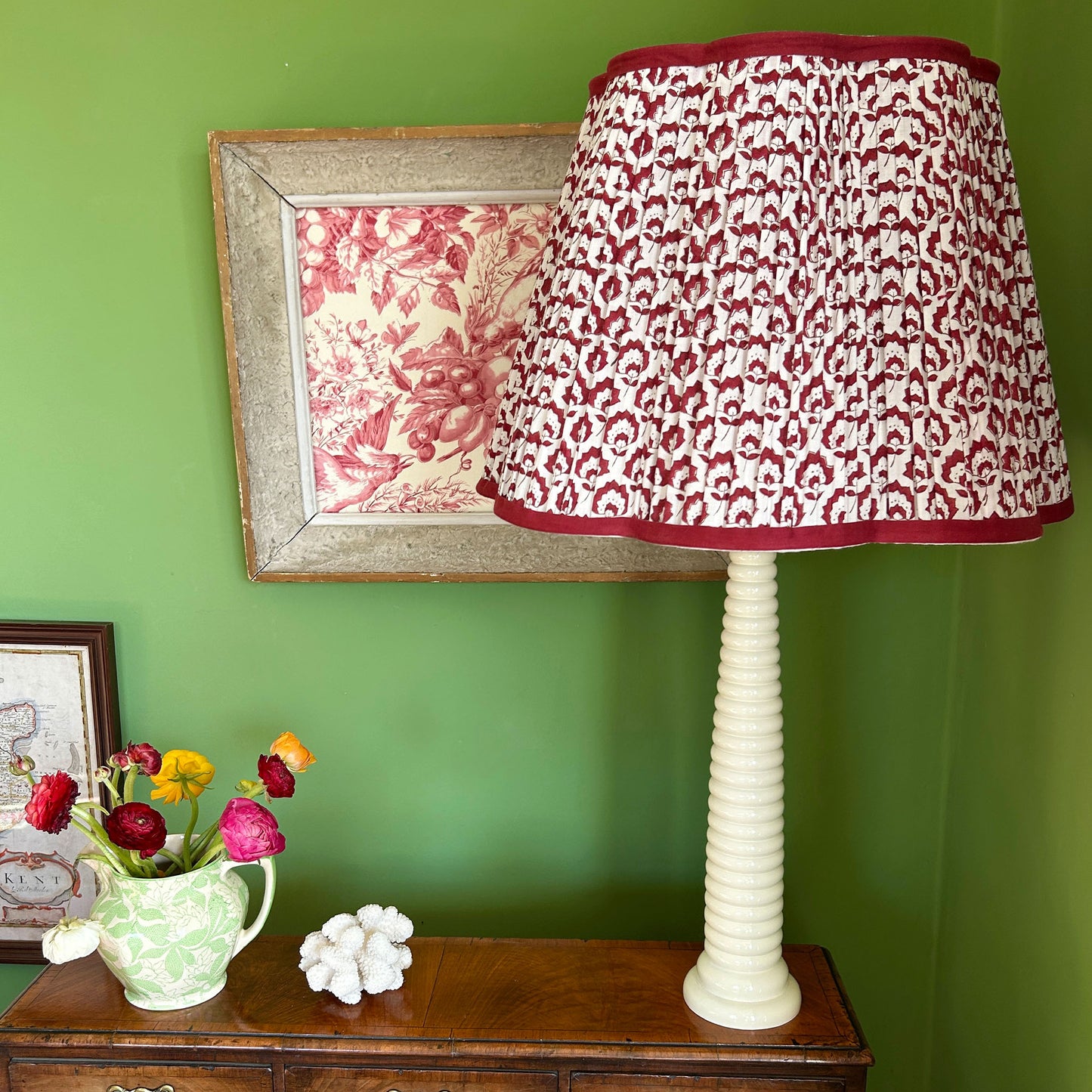 Jennie Pleated Cotton Block Printed Scallop Lampshade in Berry