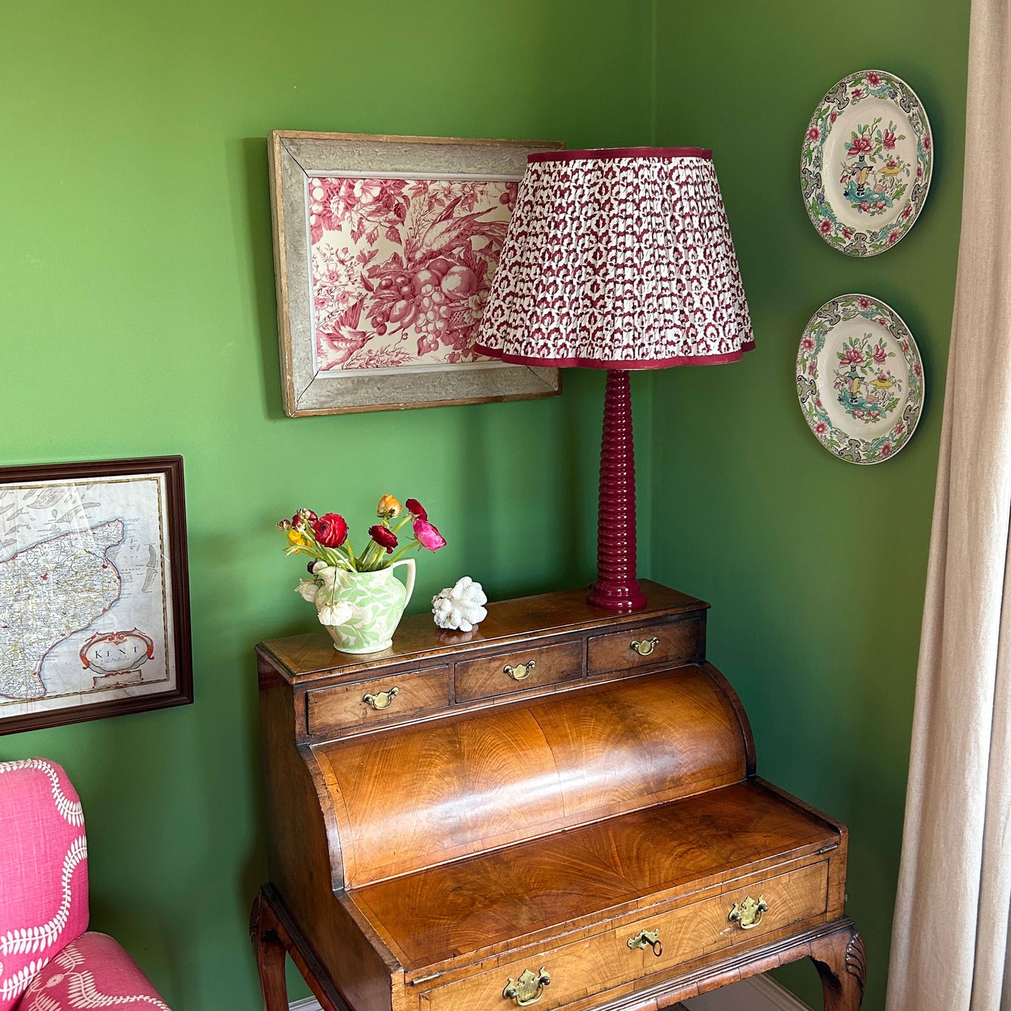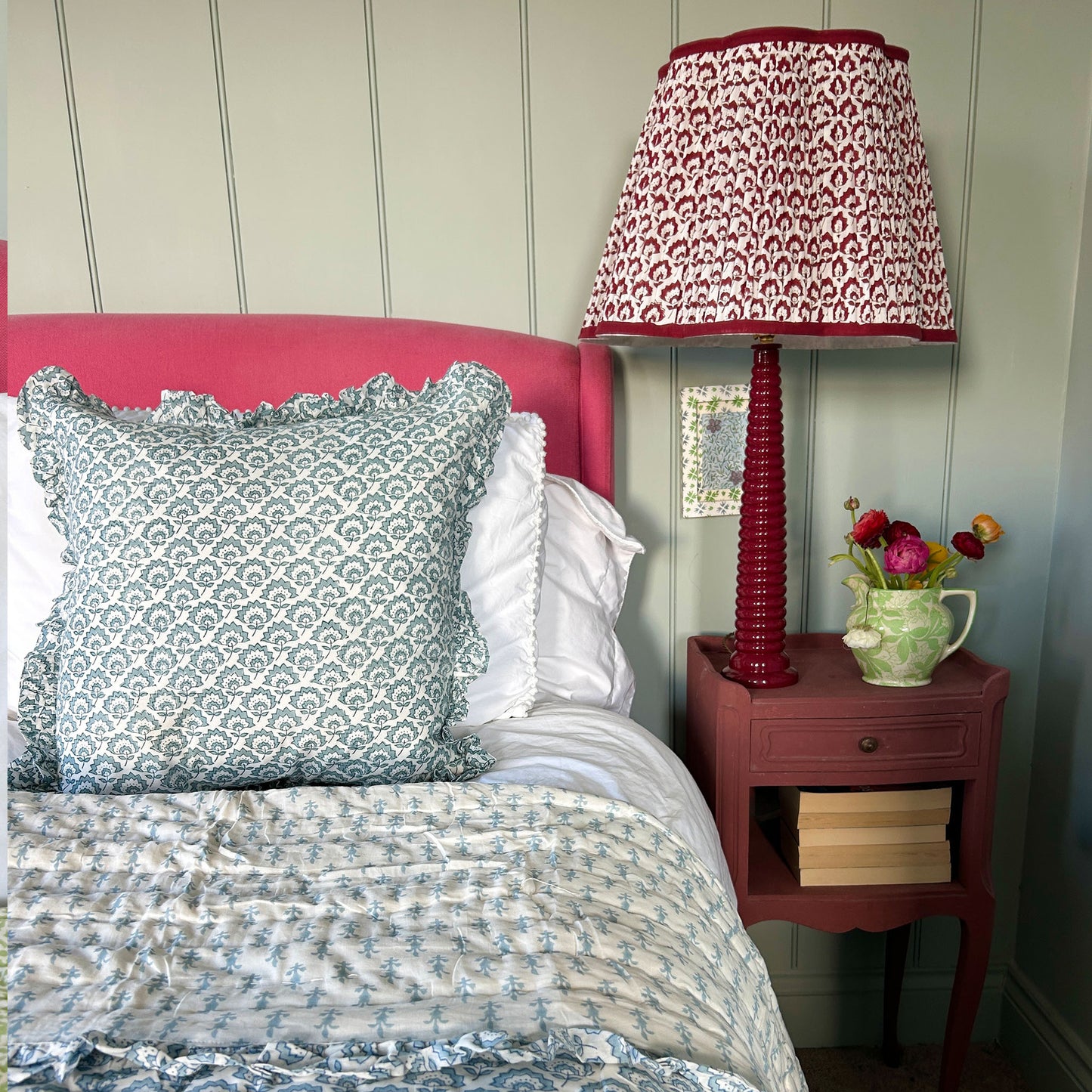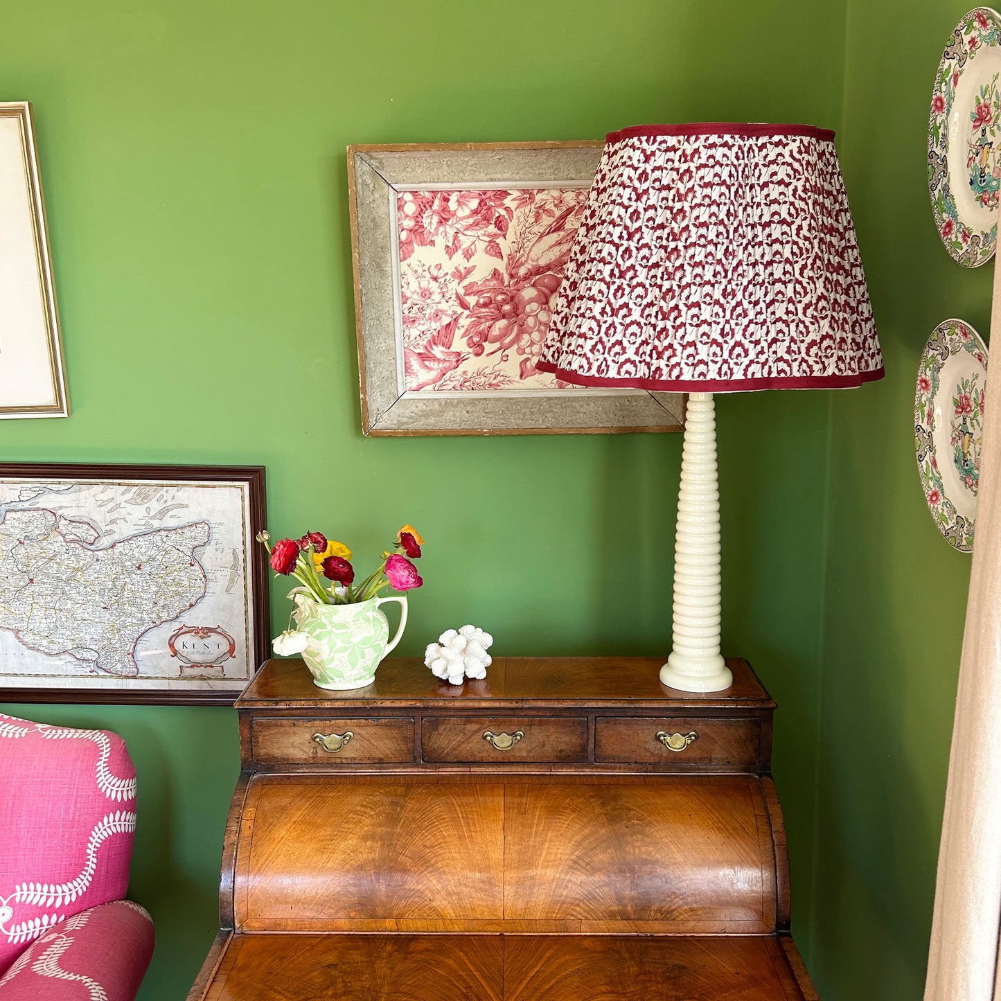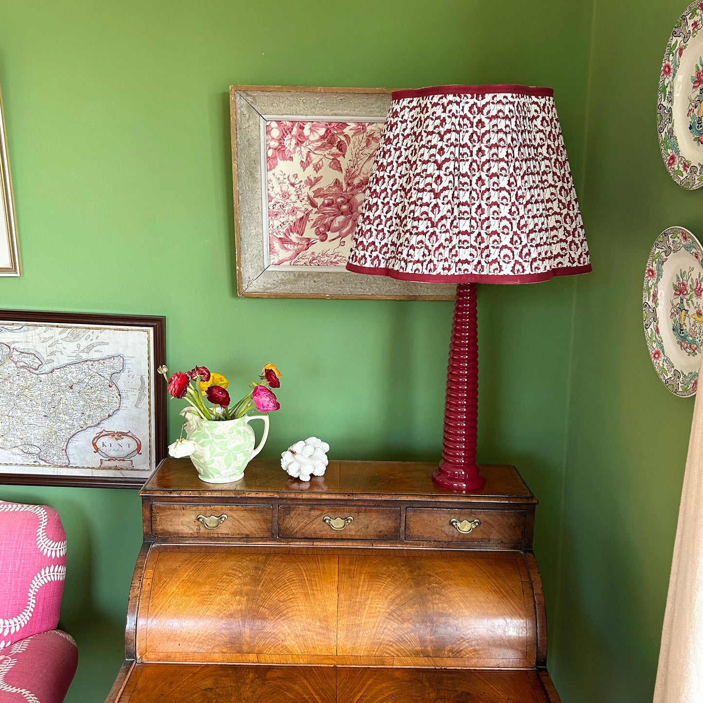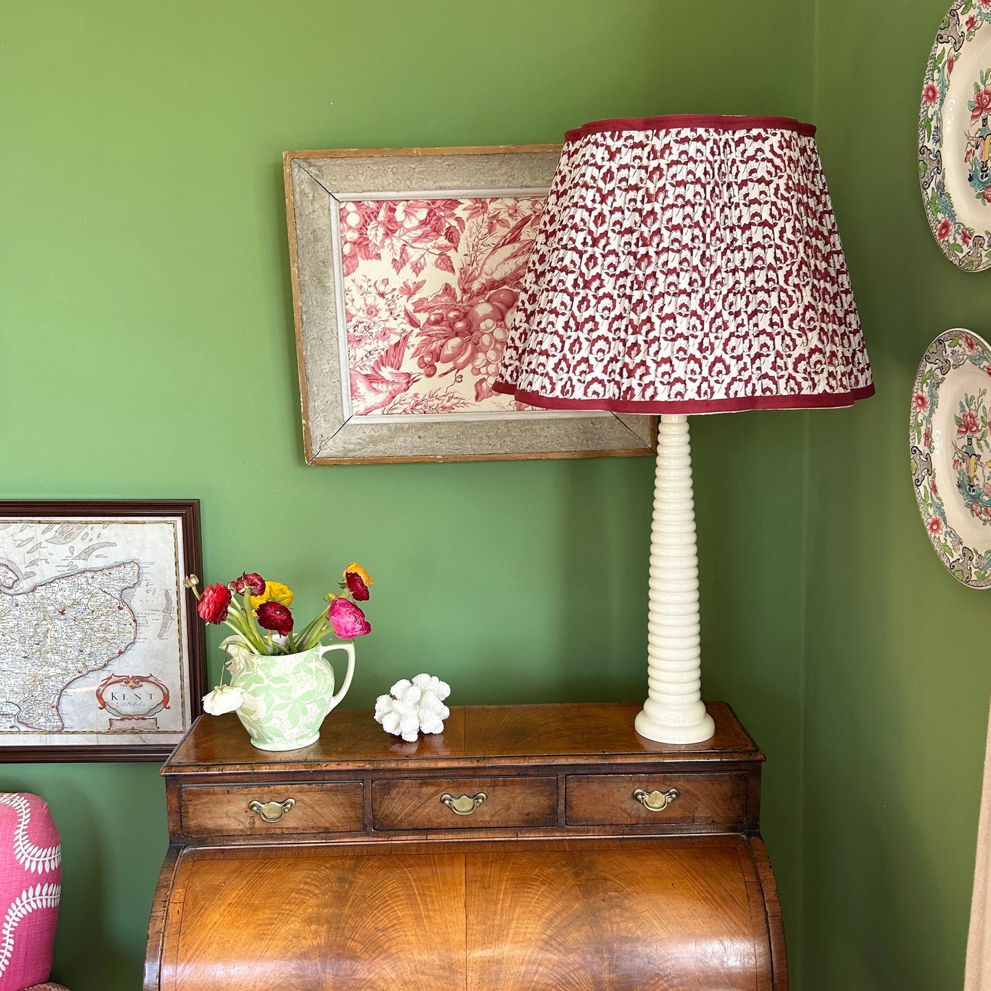 Jennie Pleated Cotton Block Printed Scallop Lampshade in Berry