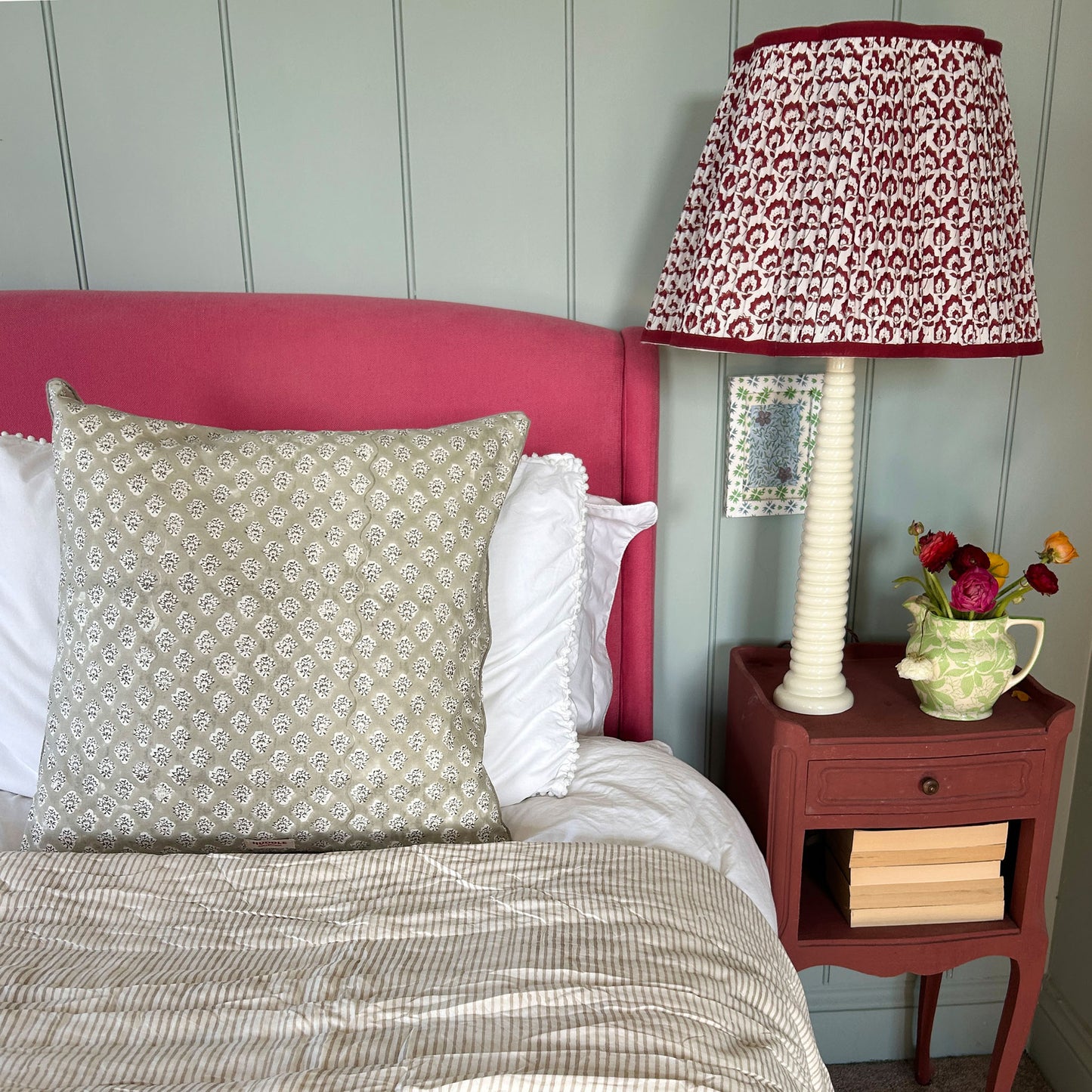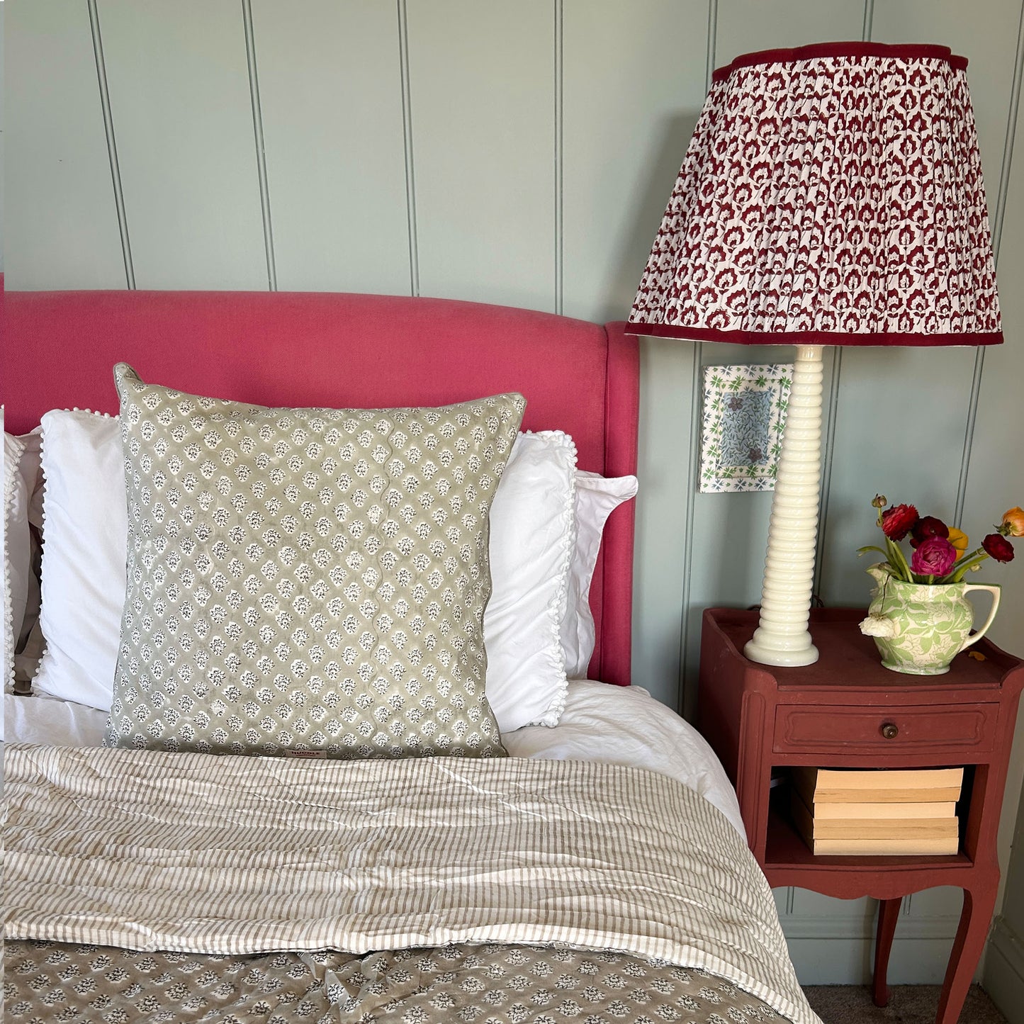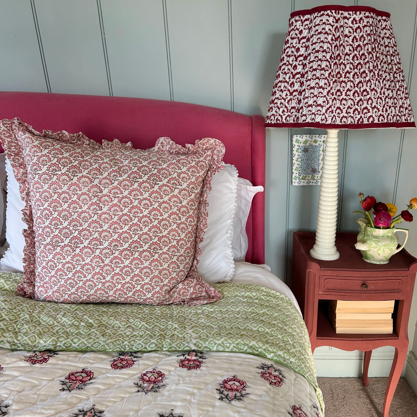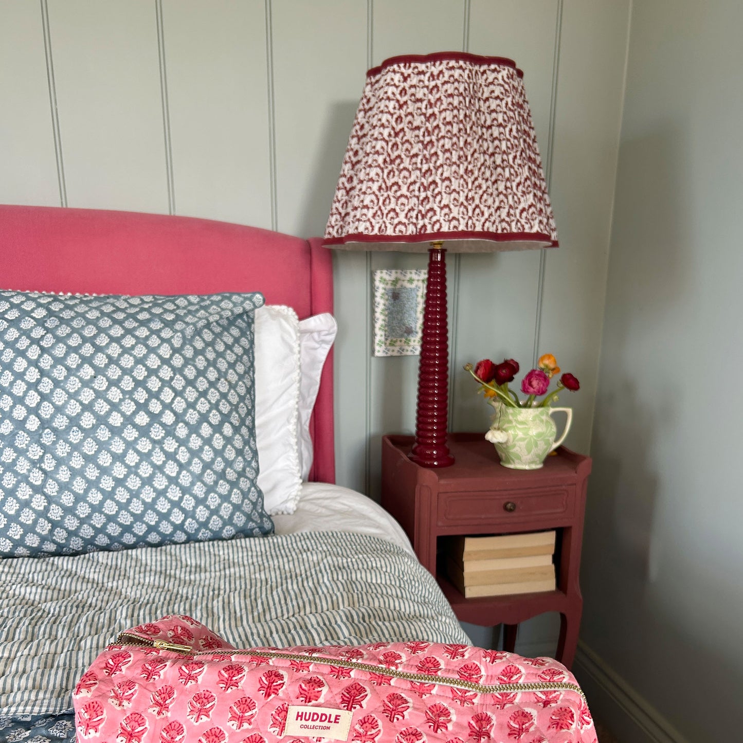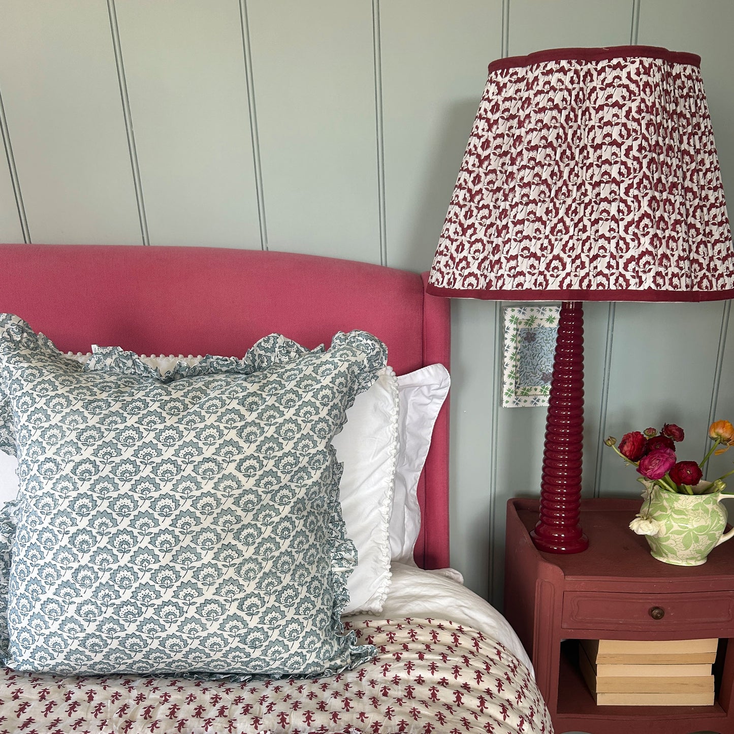 Jennie Pleated Cotton Block Printed Scallop Lampshade in Berry