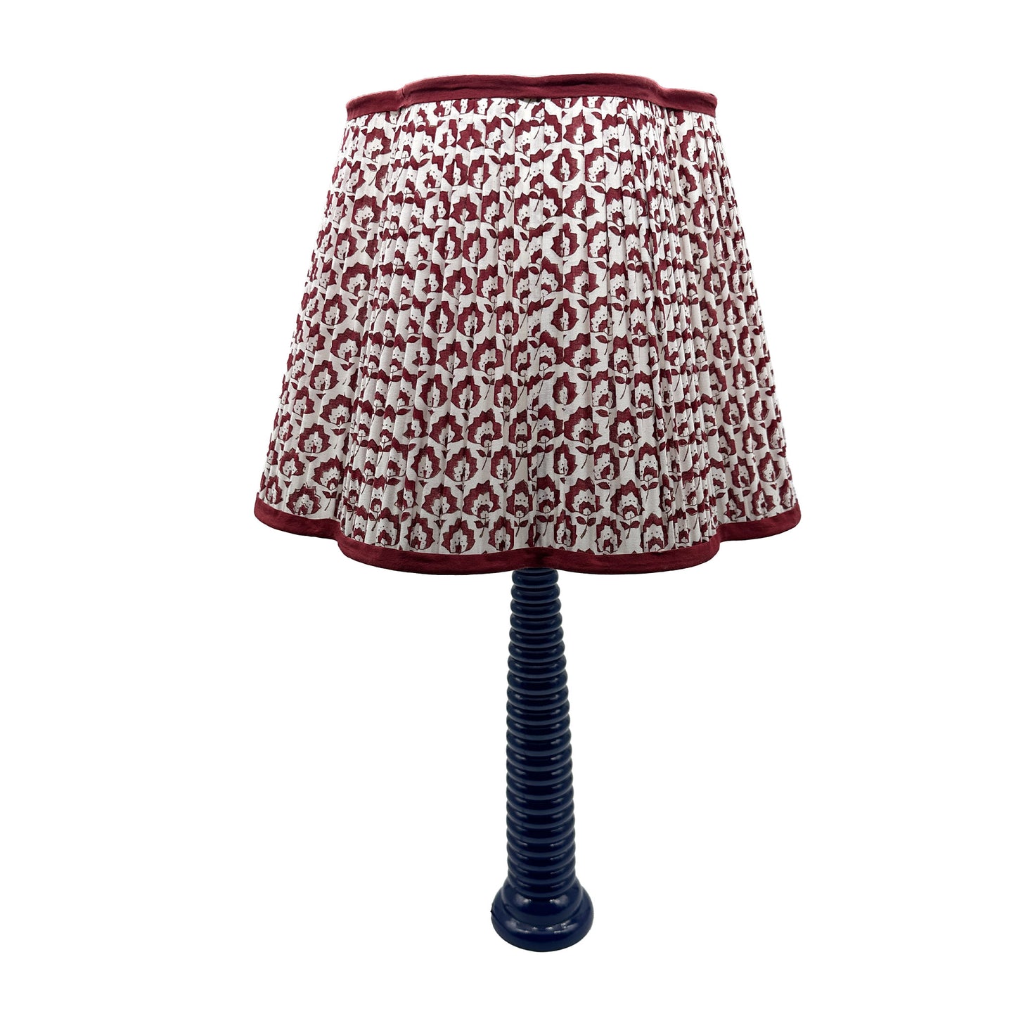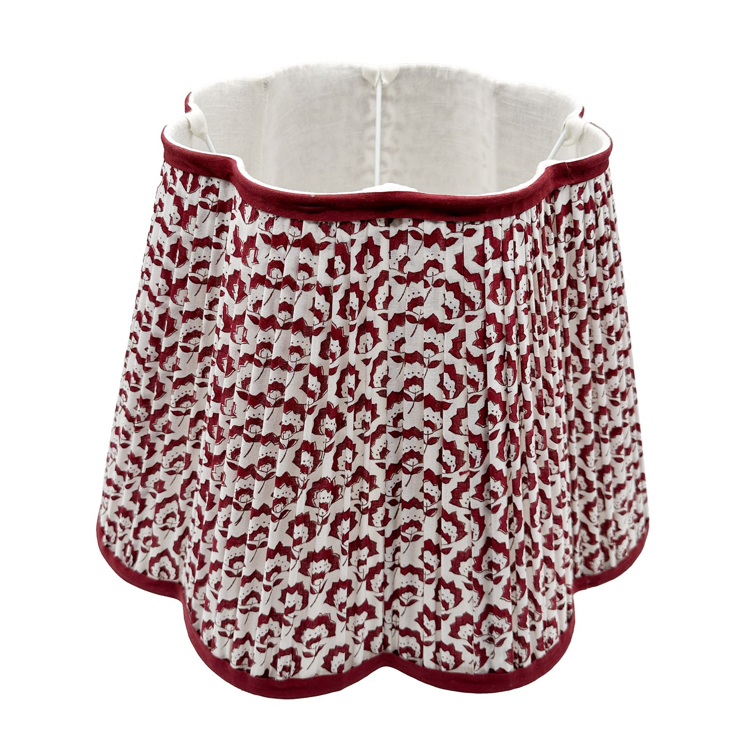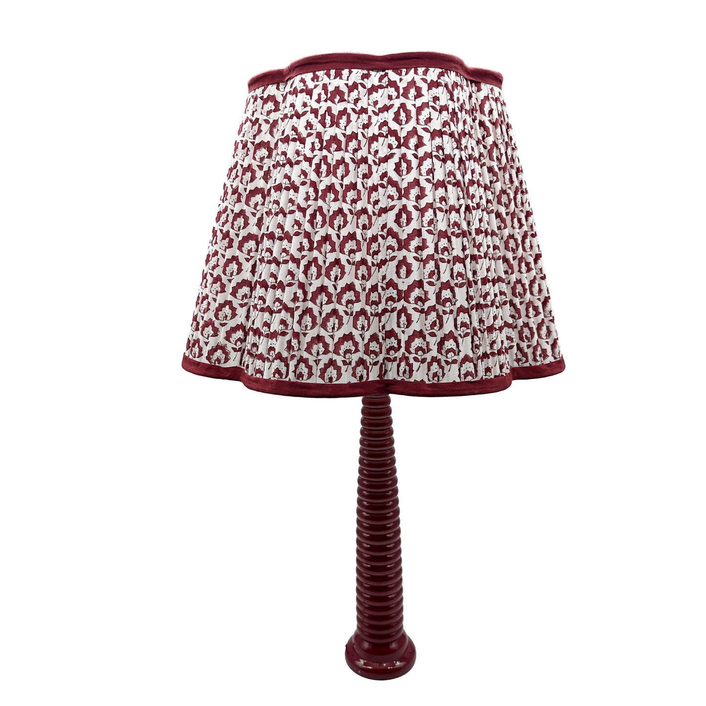 Jennie Pleated Cotton Block Printed Scallop Lampshade in Berry