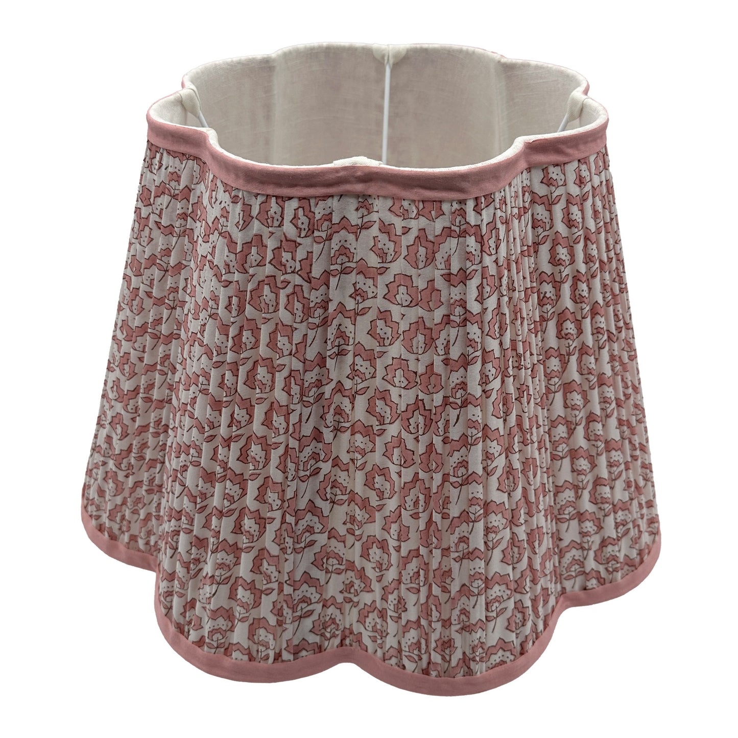 Jennie Pleated Cotton Block Printed Scallop Lampshade in Pink