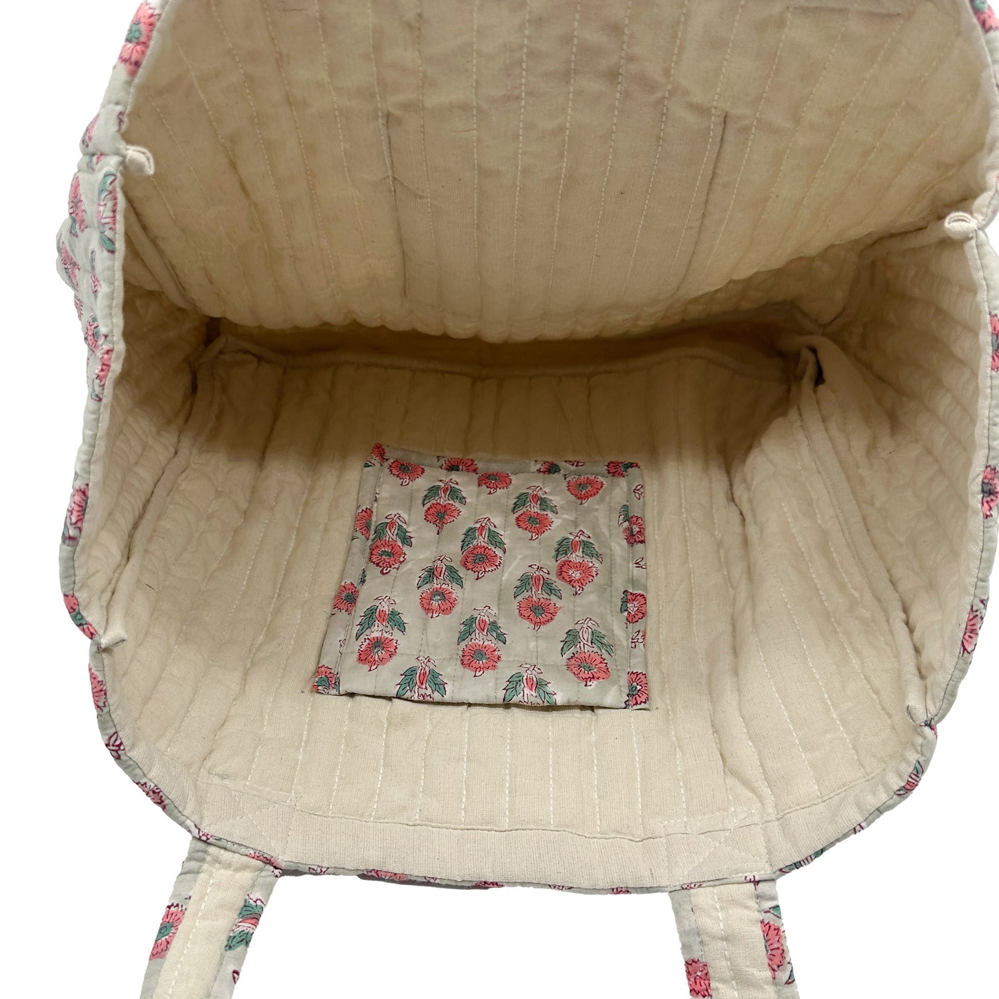 A brilliant every day quilted tote bag that you’ll wonder how you ever lived without! Will add a touch of interest and colour to your outfit. Over the shoulder style with a strong quilted strap on each side. A useful pocket on the inside and a quilted thicker cotton neutral lining.