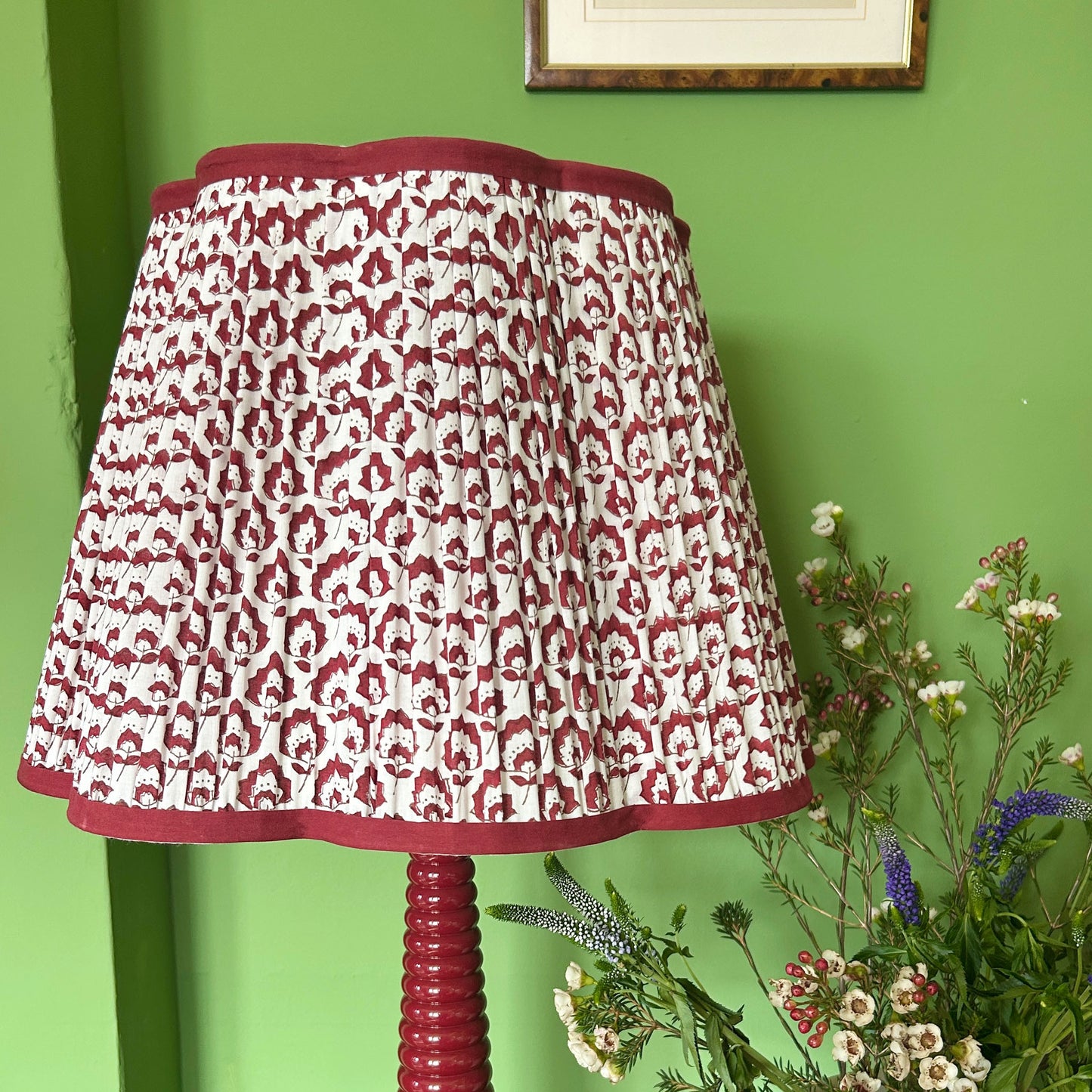 Jennie Pleated Cotton Block Printed Scallop Lampshade in Berry